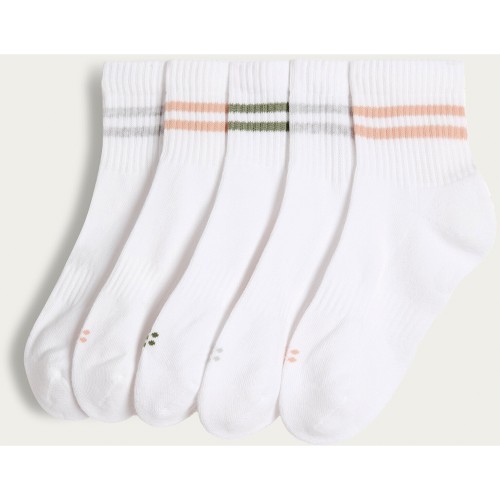 5-Pack Cotton Rich Ribbed Stripe Crop Ankle Socks in White