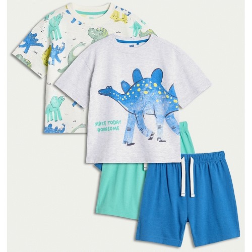 Boys 2-Pack Cotton Rich Dinosaur Print Pyjama Sets in Cream