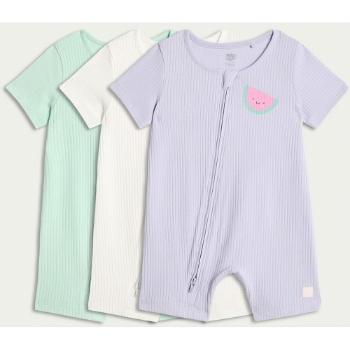 3-Pack Cotton Rich Ribbed Short Sleeved Rompers in Multi