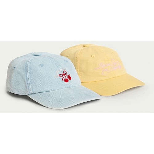 Girls 2-Pack Pure Cotton Embroidered Caps in Multi