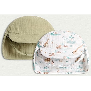 Baby 2-Pack Pure Cotton Safari Print Sun Hats in Green