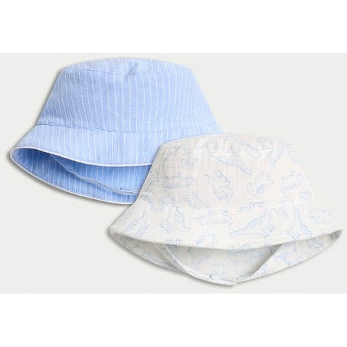 Baby 2-Pack Pure Cotton Textured Bucket Hats in Neutral