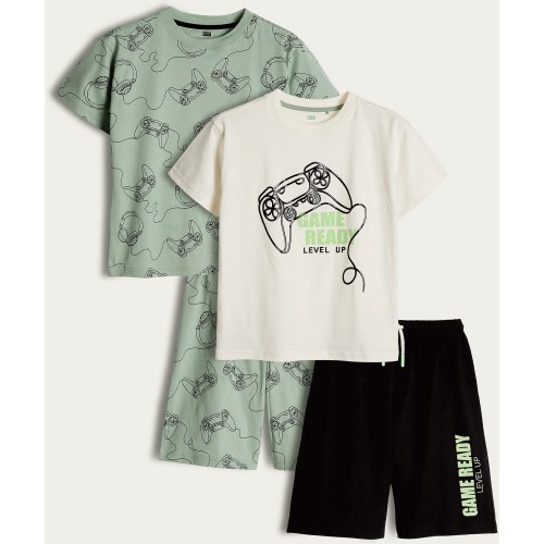 Boys 2-Pack Pure Cotton Gaming Pyjama Set in Green