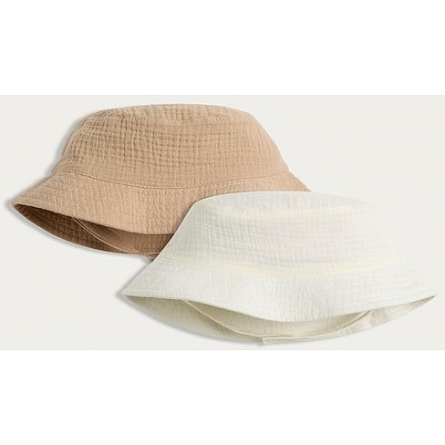 Baby 2-Pack Pure Cotton Textured Bucket Hats in Neutral