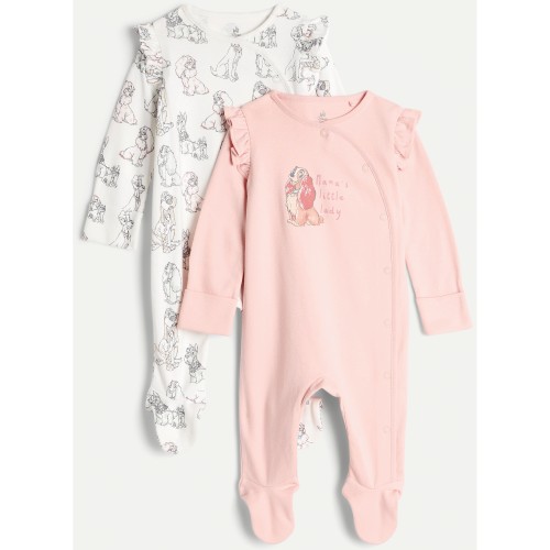Disney Lady and the Tramp 2-Pack Pure Cotton Sleepsuits in Pink