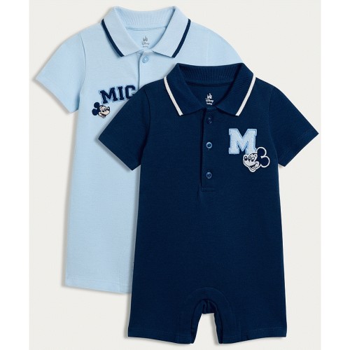 Disney Mickey Mouse 2-Pack Pure Cotton Short Sleeved Rompers in Blue