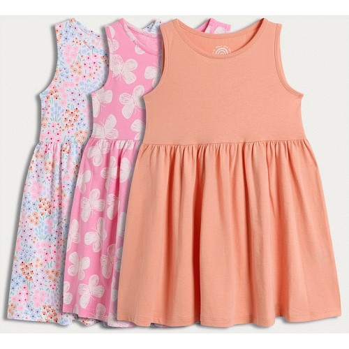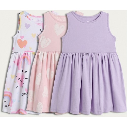 F&F Girls 3-Pack Pure Cotton Sleeveless Dresses in Multi Pink