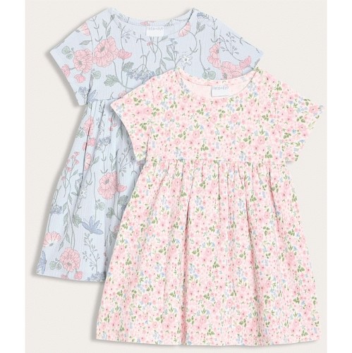 2-Pack Cotton Rich Floral Print Dresses in Multi Pink