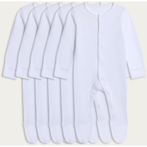 5-Pack Pure Cotton Long Sleeved Sleepsuits in White
