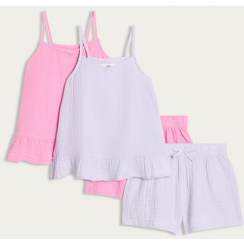 Girls 2-Pack Pure Cotton Textured Pyjama Sets in Multi