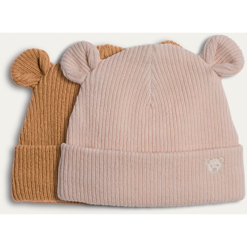 F&F Baby 2-Pack Ribbed Bear Ear Beanie Hats in Neutral