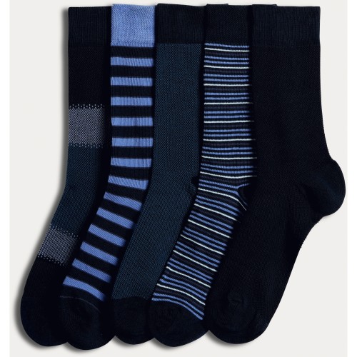 5-Pack Cotton Blend Striped Ankle Socks in Navy
