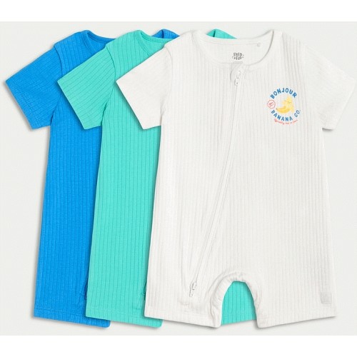 3-Pack Cotton Rich Ribbed Short Sleeved Rompers in Blue