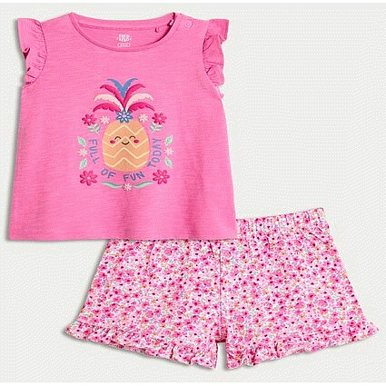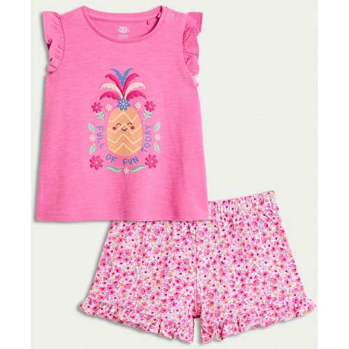 2-Piece Pure Cotton Pineapple Print Top and Shorts Set in Pink