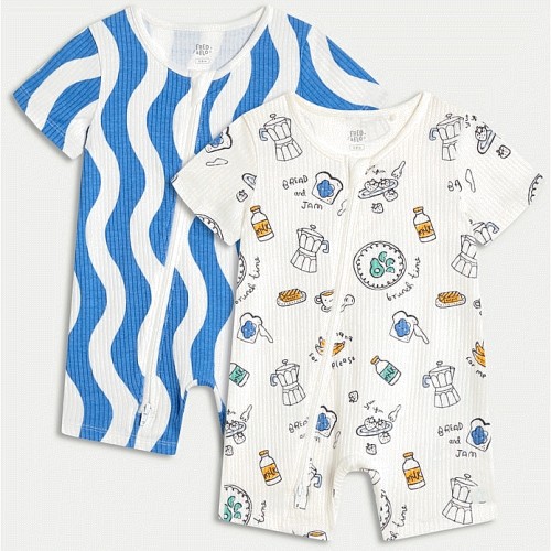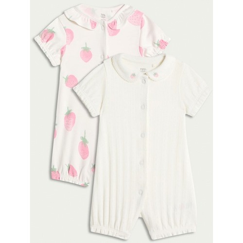 2-Pack Cotton Rich Printed Short Sleeved Rompers in White