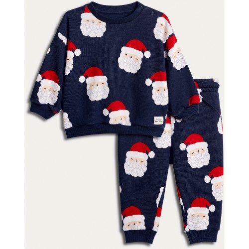 2-Piece Cotton Rich Santa Print Sweatshirt and Joggers Set in Navy
