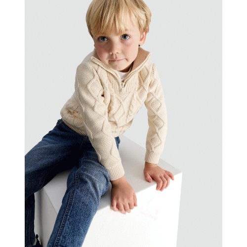 F&F Boys 2-Piece Cable Knit Jumper and Jeans Set in Cream