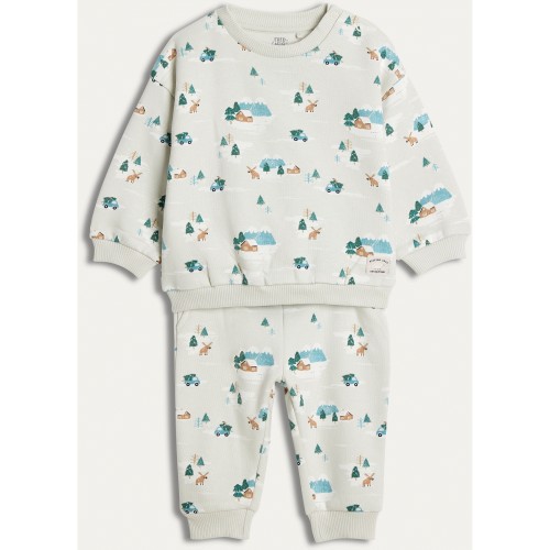 F&F Baby 2-Piece Cotton Rich Adventure Print Sweatshirt and Joggers Set in Green