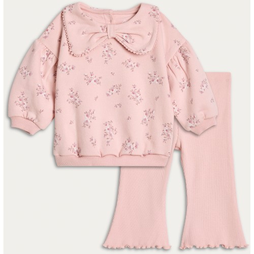2-Piece Cotton Rich Floral Print Jumper and Leggings Set in Pink