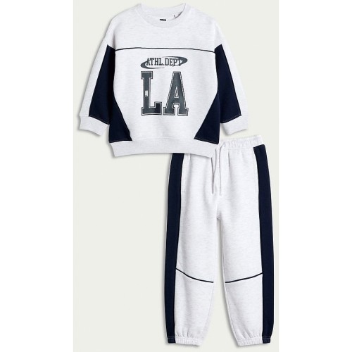 F&F Boys 2-Piece Cotton Rich LA Slogan Sweatshirt and Joggers Set in Multi