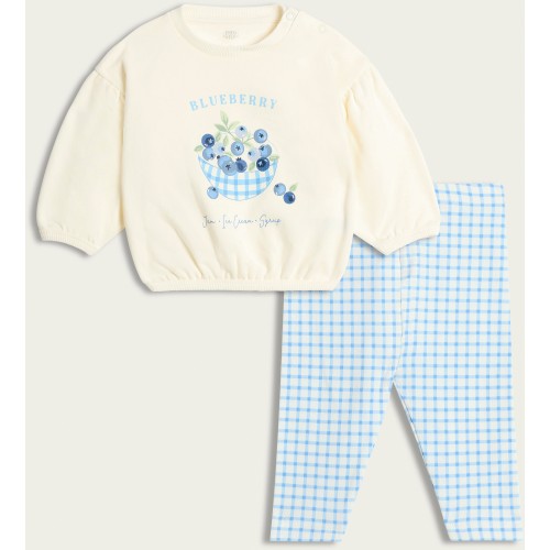 2-Piece Cotton Rich Blueberry Print Sweatshirt and Leggings in White