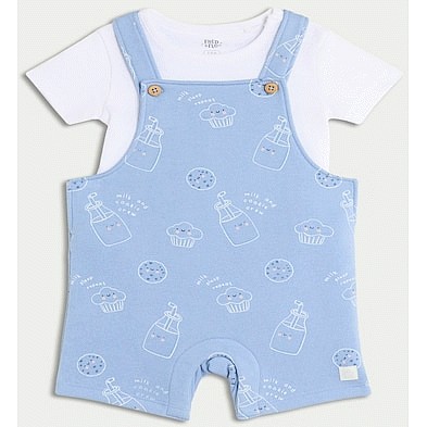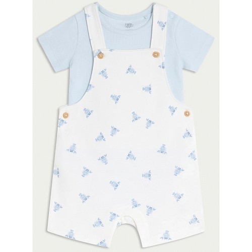 2-Piece Cotton Rich Dungarees and Bodysuit Set in Blue