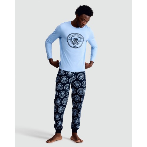 Manchester City 2-Piece Top and Fleece Bottoms Pyjamas Set in Blue