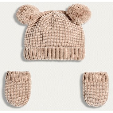 Baby 2-Piece Pom Pom Hat and Mittens Set in Neutral