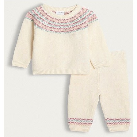 2-Piece Fairisle Knitted Jumper and Trousers Set in Cream