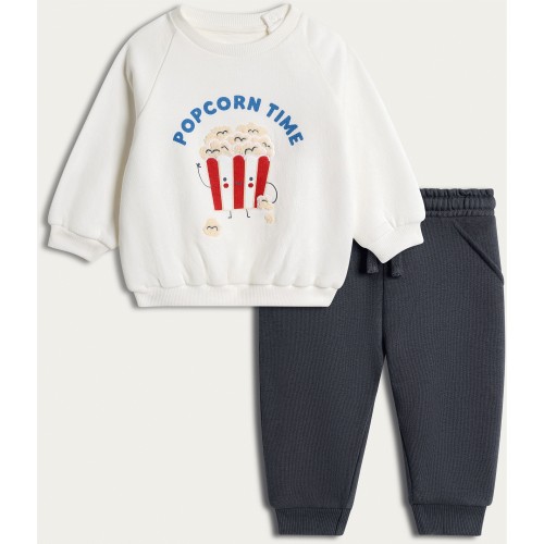 2-Piece Cotton Rich Popcorn Time Sweatshirt and Joggers Set in Cream