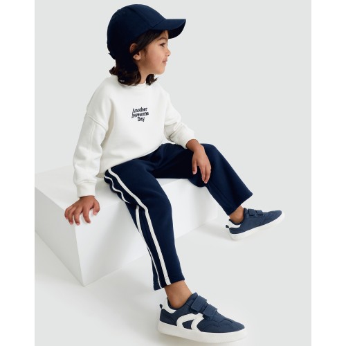 F&F Boys 2-Piece Cotton Rich Another Awesome Day Sweatshirt and Joggers Set in Navy