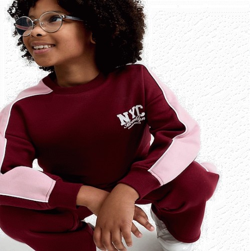F&F Girls NYC Brooklyn Sweatshirt and Joggers Set in Burgundy