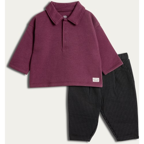 F&F Baby 2-Piece Cotton Rich Polo Sweatshirt and Joggers Set in Multi