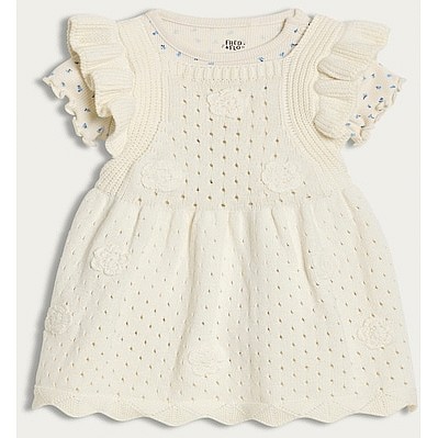 2-Piece Pure Cotton Knitted Dress and Bodysuit in Cream