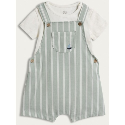 Pure Cotton Dungarees and Striped Bodysuit Set in Blue