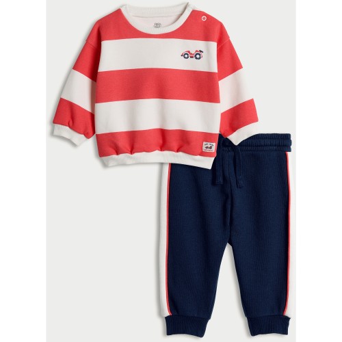 2-Piece Cotton Rich Striped Sweatshirt and Joggers in Red