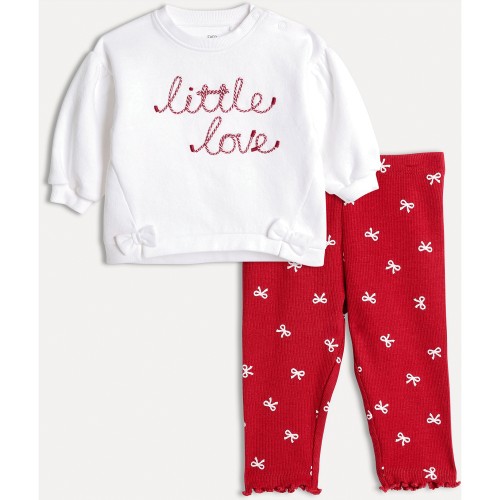 2-Piece Cotton Rich Bow Sweatshirt and Leggings Set in Red