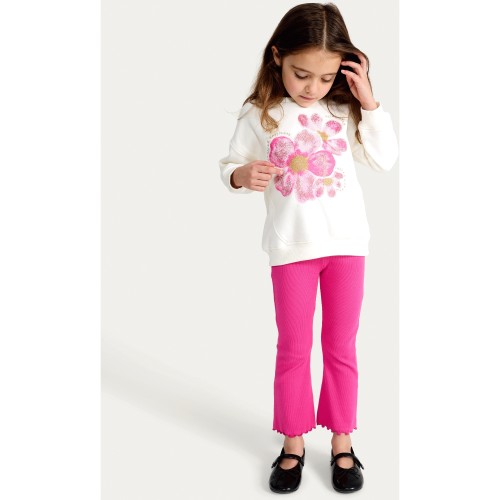 F&F Girls 2-Piece Cotton Rich Floral Print Sweatshirt and Ribbed Leggings Set in Multi Pink