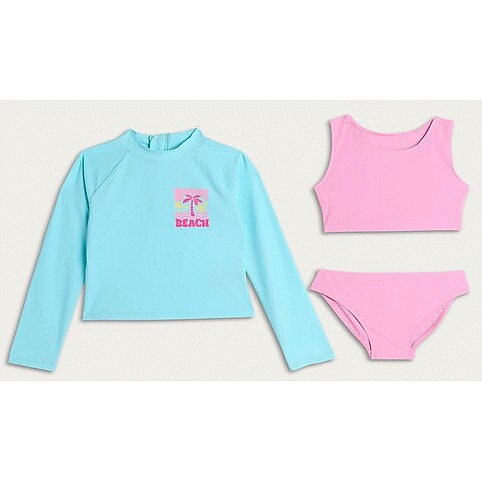 F&F Girls 3-Piece Bondi Beach Rash Vest and Bikini Set in Turquoise