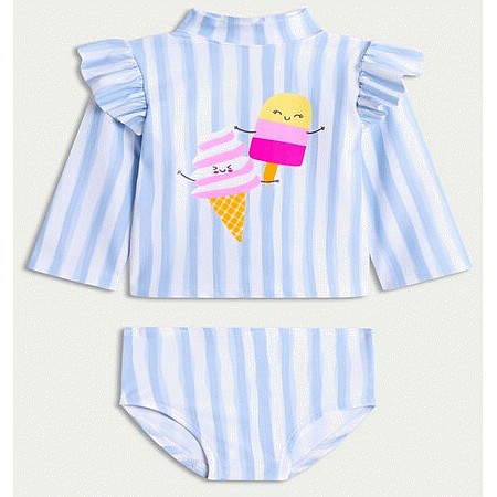 F&F Baby 2-Piece Ice Cream Print Striped Swim Set in Blue