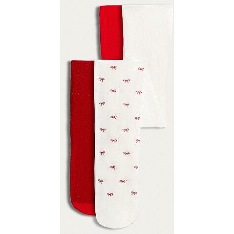 Girls 2-Pack Metallic Bow Pattern Tights in Multi