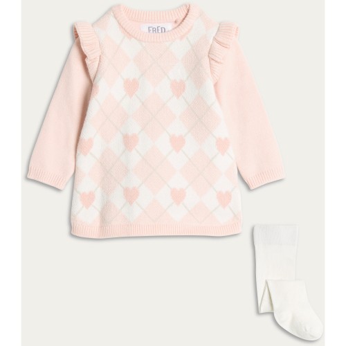 2-Piece Argyle Heart Knitted Dress and Tights Set in Pink