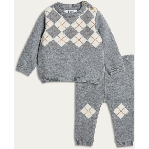 2-Piece Knitted Farmyard Print Jumper and Joggers Set in Grey Marl