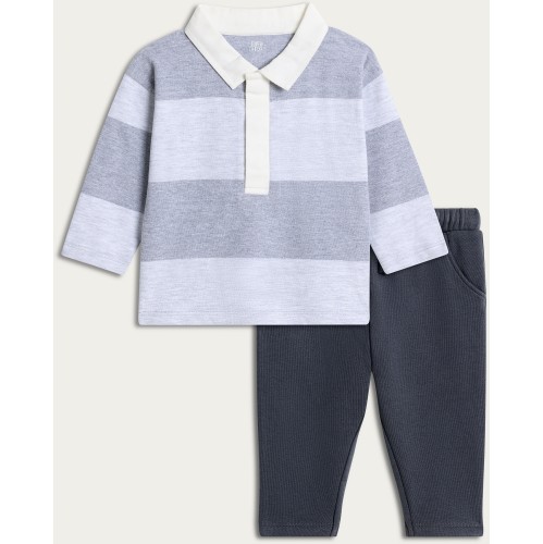 2-Piece Cotton Rich Rugby Top and Joggers Set in Grey Marl