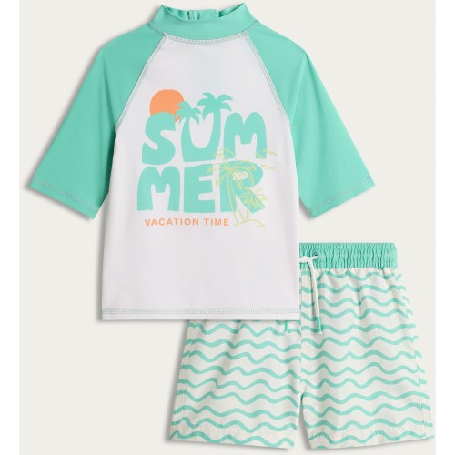 F&F Boys 2-Piece Summer Vacation Time Rash Vest and Swim Shorts Set in Multi