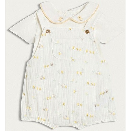 2-Piece Pure Cotton Duck Print Romper and Bodysuit Set in White