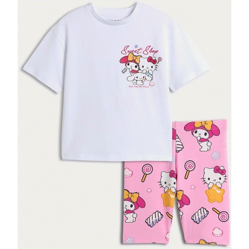 Hello Kitty 2-Piece Pure Cotton Sweet Shop T-Shirt and Cycling Shorts Set in Multi Pink