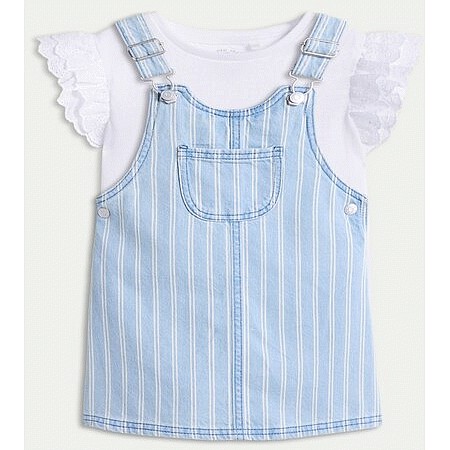 F&F Girls 2-Piece Pure Cotton Striped Pinafore and T-Shirt Set in Blue