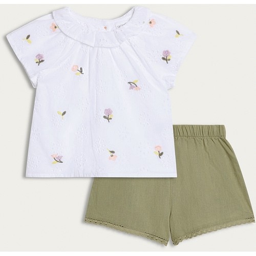 2-Piece Pure Cotton Embroidered T-Shirt and Shorts Set in Cream