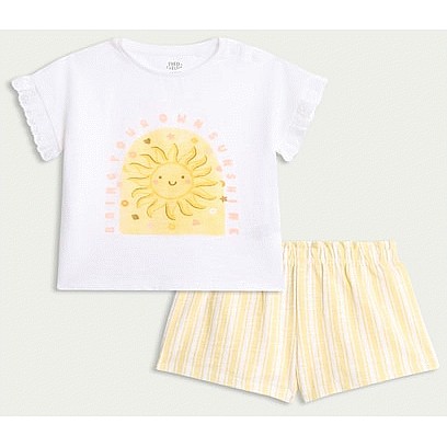 F&F Baby 2-Piece Pure Cotton Ciao Limone T-Shirt and Striped Shorts Set in Cream